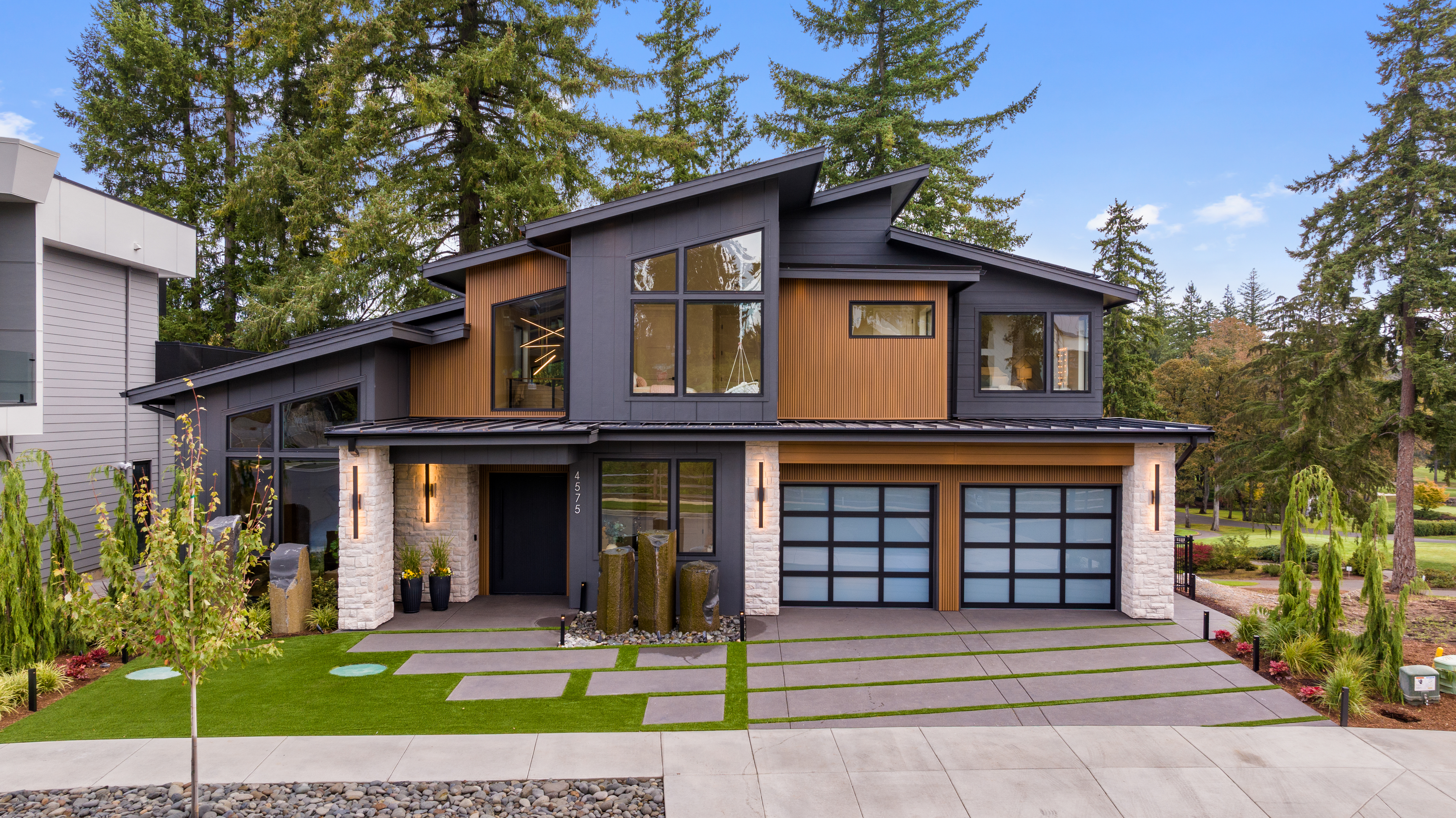 With the lot located next to the ninth hole of Camas Meadows Golf Course, the home is designed to capture long views and natural light. Clean lines, contemporary massing and thoughtful articulation give the project a bold, yet refined presence adjacent to the course.