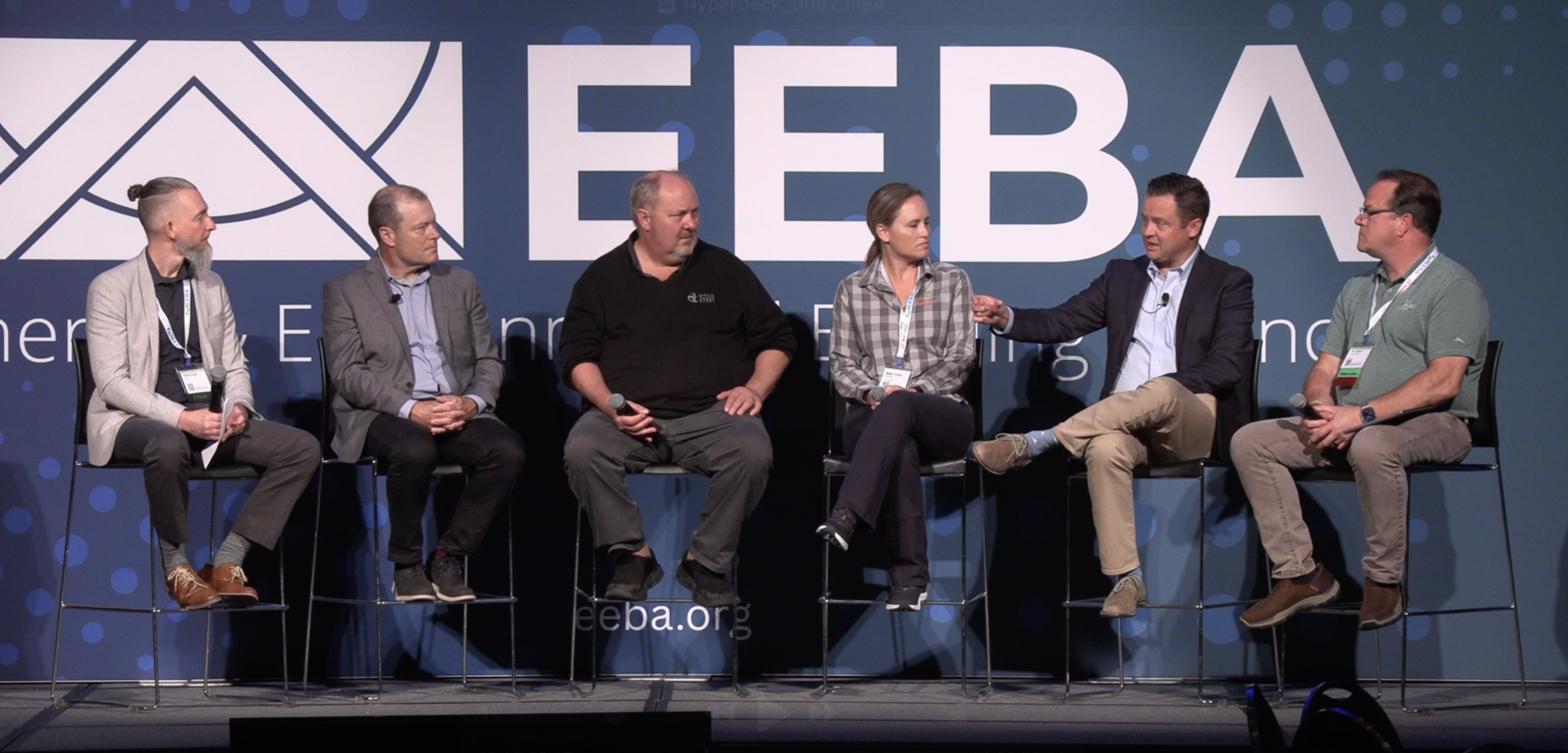 At EEBA’s 2025 High Performance Home Builder Summit, a panel of top home builders discussed how their commitment to high performance building stands despite shifts in federal programs. The panel called, “The Sustainability Waters Have Gotten a Bit Choppy…So What Now? ” moderated by by Sean Hunter, DuPont’s Global Sustainability Lead. The conversation hosted Aaron Smith (EEBA), Doug Tarry (Doug Tarry Homes), Megan Cordis (Beazer Homes), Stephen Myers (Thrive Home Builders) and Tim O’Brien (Tim O’Brien Homes).